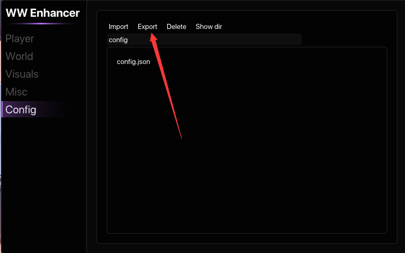 设置教程,打开功能后,点击Config->然后点Export,就能保存了,加载配置点import